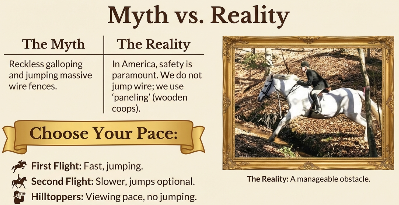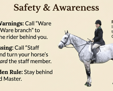 Hat: A black or dark-colored top hat is traditional for formal hunts; a helmet is often worn for safety in less formal settings.